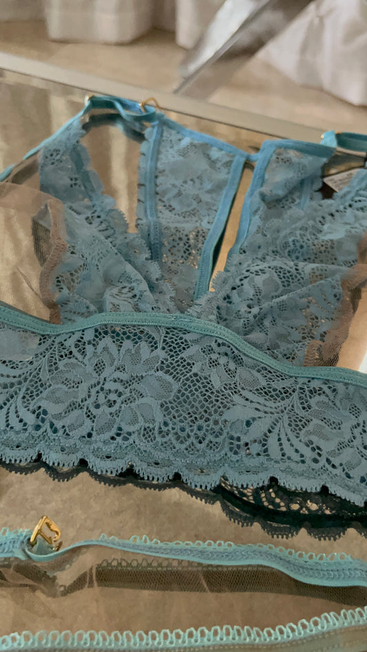 Dreamy Babydoll and Two Piece Set Light Blue/Nude