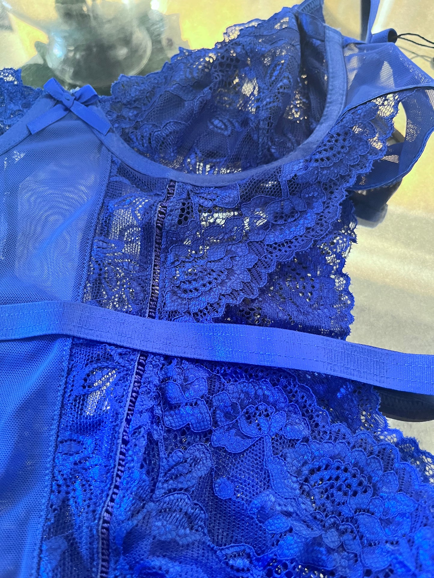 Royal Blue Lingerie Teddy with Lace removable garters