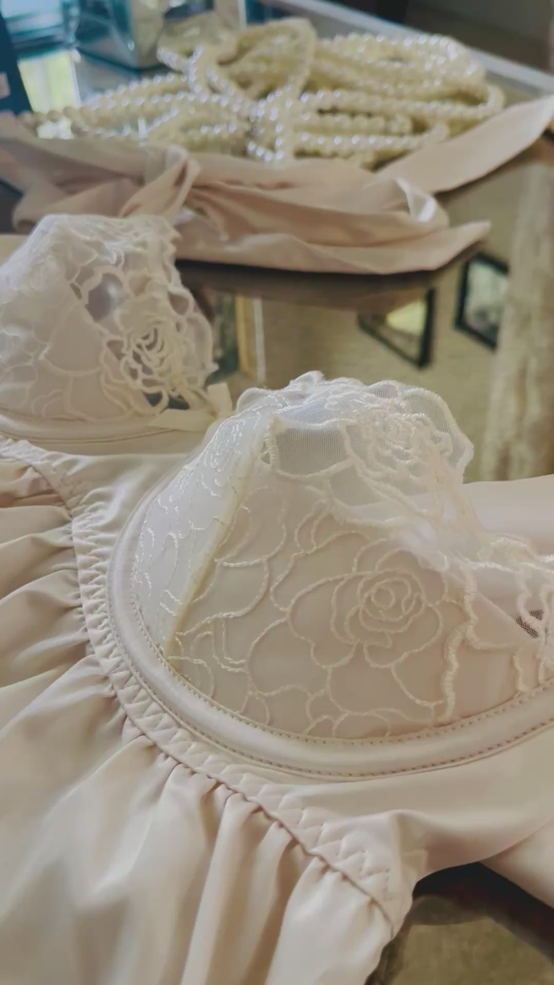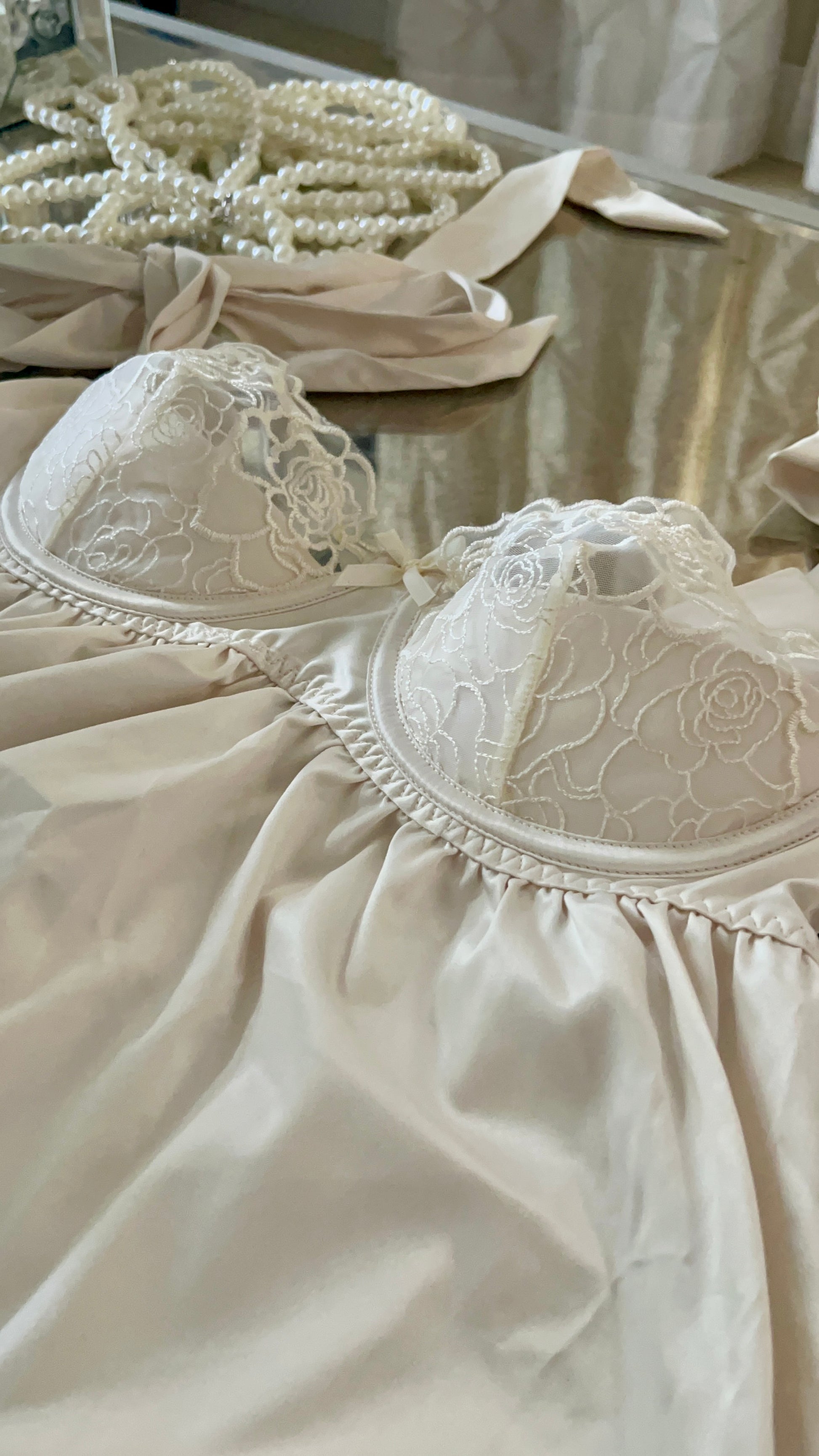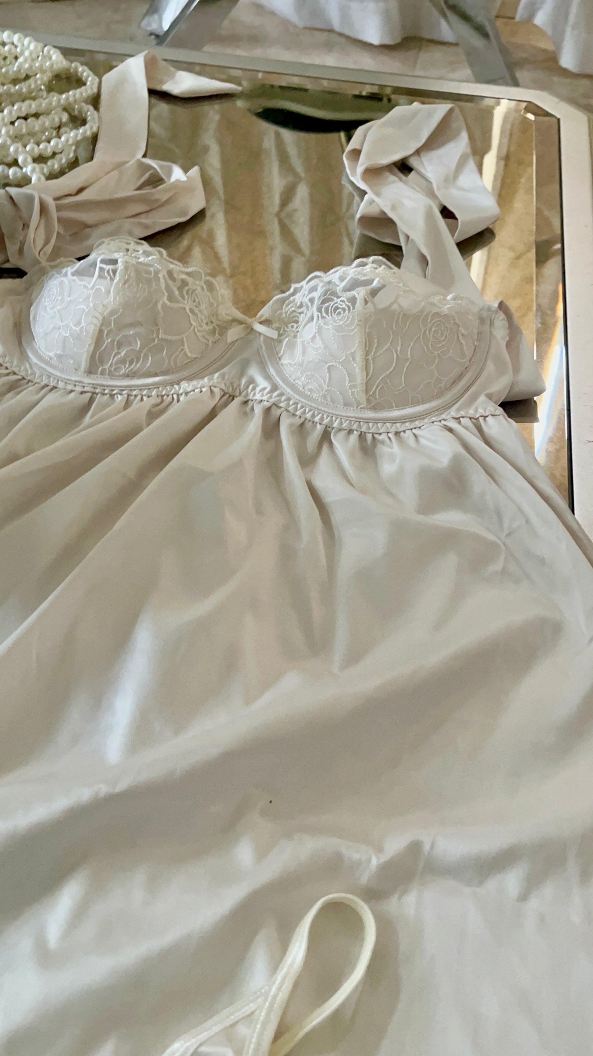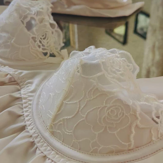 BRIDAL SATIN & EMBROIDERED LACE Off White BABYDOLL & G-STRING SET